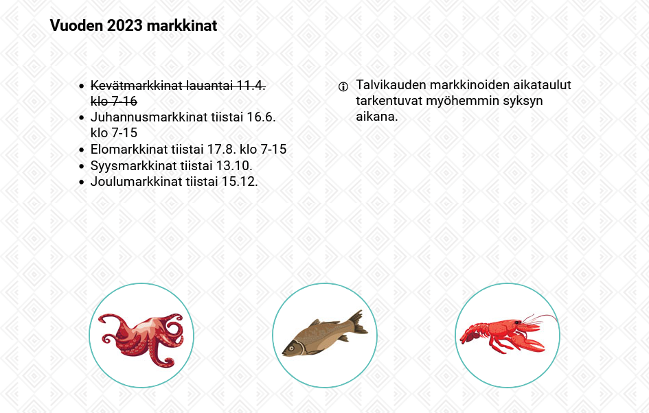 Talvikauden markkinoiden aikataulut tarkentuvat myöhemmin syksyn aikana.